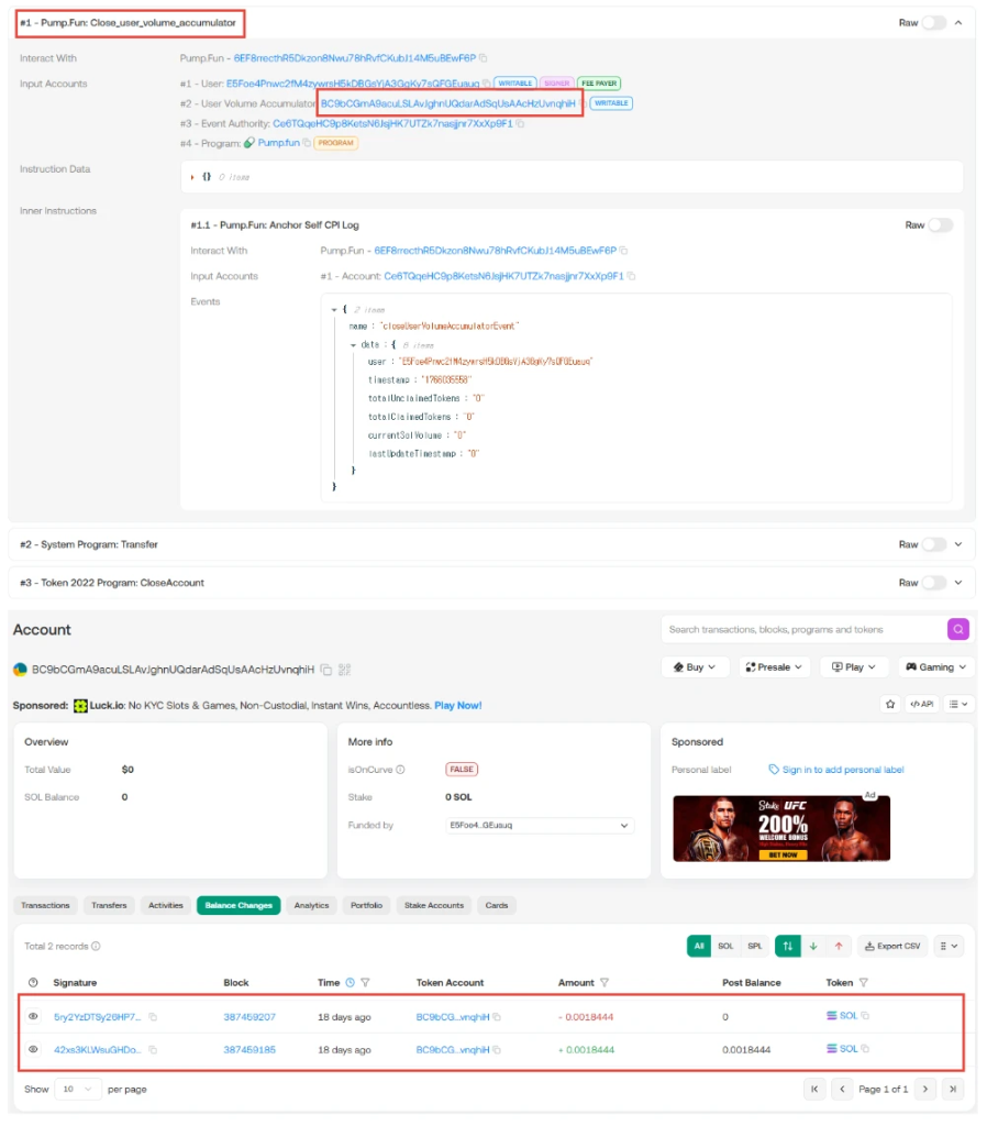 When a new wallet trades a token on Pump Fun for the first time, an account rent (PDA) of 0.0018444 SOL is automatically charged. This is a structural feature of Pump Fun and cannot be avoided.